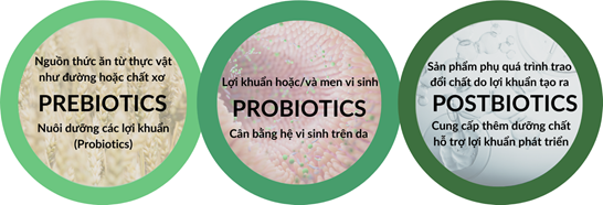 3/ Postbiotics là những sản phẩm của quá trình trao đổi chất được sản xuất bởi lợi khuẩn, có vai trò quan trọng trong việc tạo một môi trường thuận lợi cho sự phát triển của các lợi khuẩn trên da. (3)