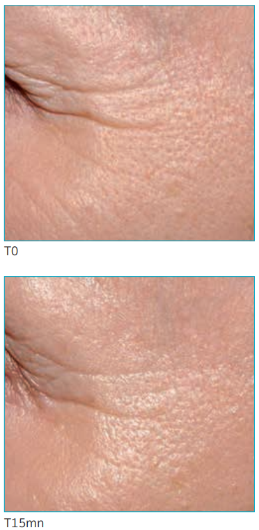 Hoạt hóa tổng hợp collagen ở nguyên bào sợi giúp làm đầy lớp trung bì và làm giảm các nếp nhăn vùng mắt trong 2 tuần